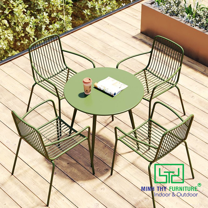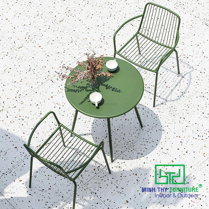 1. Bàn ghế sắt cafe MT3012 có dùng được ngoài trời không?